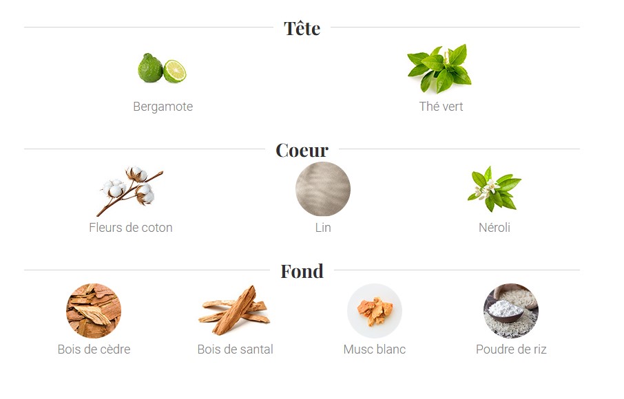 Этот новый аромат вдохновлен атмосферой вечной свежести, в котором запечатлена сущность чистой воды, легкость льна и успокаивающие нотки чая и нероли.